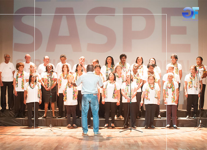 O SASPE- Serviço de Ação Social e Projetos Especiais promoveu o III Encontro de Corais da Melhoridade de Suzano, no Teatro Municipal “Dr. Armando de Ré”. Na foto Grupo Musical Nossa Voz de Suzano que abriu magnificamente o encontro, sob a regência de Lucimar de Souza Barbosa.