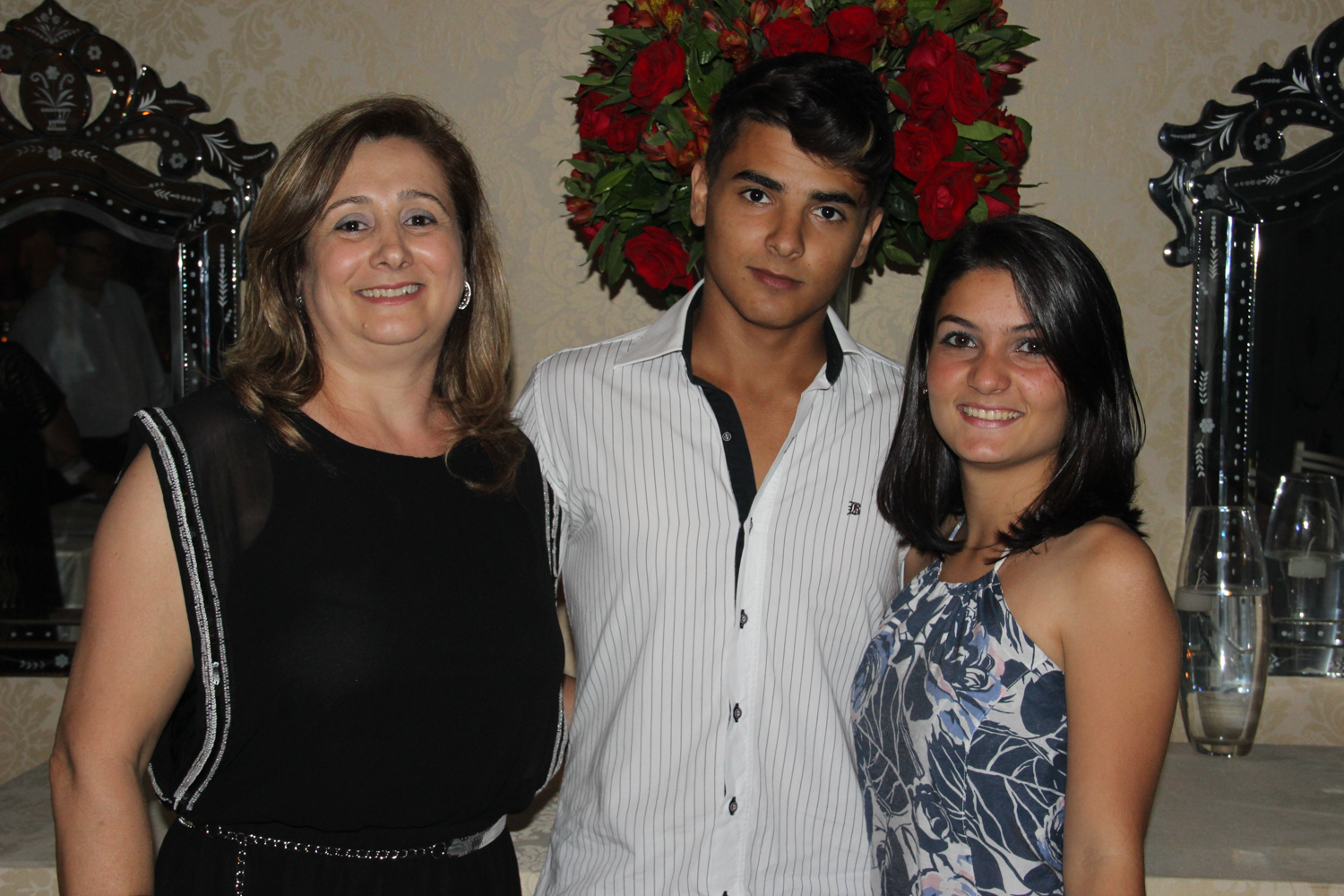 No Suzan Fest. Isabel Nascimento com o filho Lucas Nascimento e a nora Juliana Nascimento no jantar de confraternização da Associação de Corretores de Imóveis – Acoris, no final de dezembro
