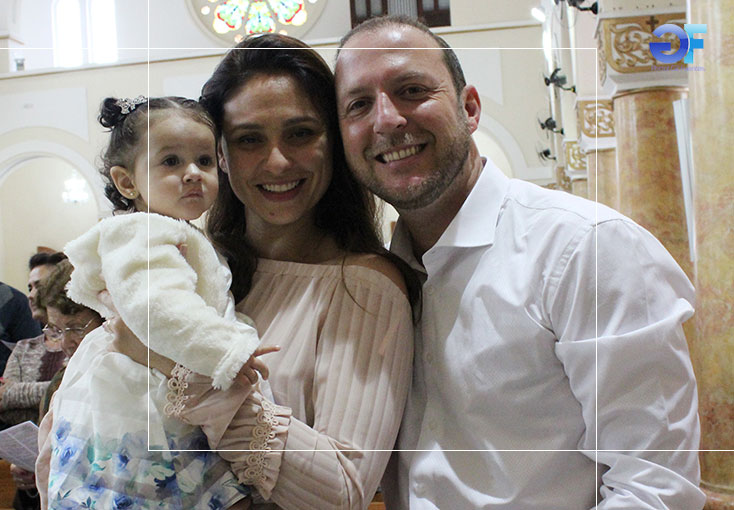 Os padrinhos de Helena. Carol e Rafael Guillaumon foram escolhidos por Herbert e Karen para serem os padrinhos de Helena, que foi batizada na manhã de domingo na Catedral de Sant’Anna de Mogi das Cruzes.