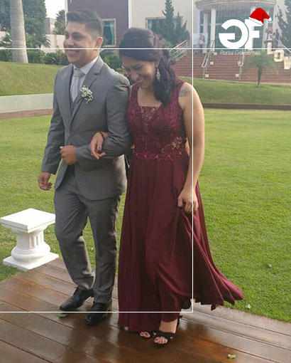 Mãe do noivo. Will foi conduzido ao altar por sua mãe, Maria Aparecida Araújo da Silva Oliveira.