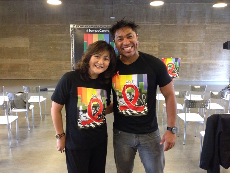 A internacional artista plástica Suzy Fukushima (42) ao lado do ator e diretor Sebah Vieira (38) a convite da Prefeitura do Estado de São Paulo participaram na manhã desta sexta feira (29) no Espaço das Artes, da abertura “Sampa Contra Aids” do Dia Mundial  do Combate a Aids, doando  sua arte para a campanha. Antes disso customizou um violão a pedido do cantor Daniel para a AACD.