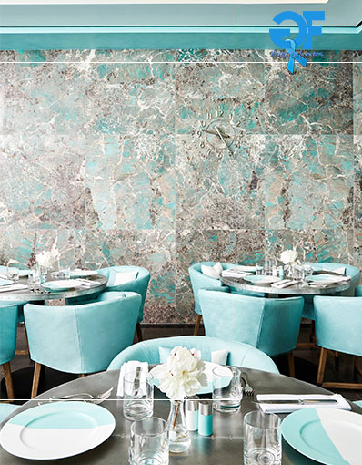 Um retrato de Charles Lewis Tiffany (CLT) foi encomendado e criado com 8 mil parafusos pintados a mão, dando um toque contemporâneo ao espaço. O “Azul Tiffany” aparece em cada canto deste projeto, inclusive no design do café.