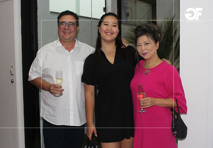 Vander Lelis (que assinou as estruturas metálicas) e Kayoko Tubamoto Lelis com a filha Semiramis
